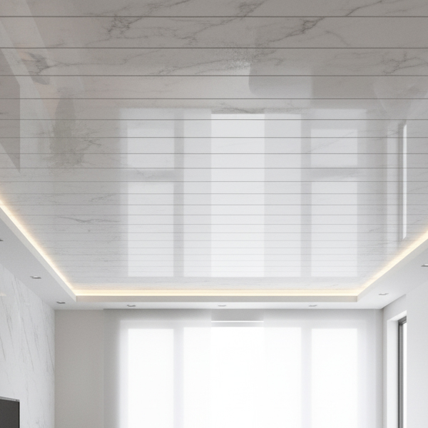 - Design & Finish: White marble effect with grey veining (often Carrara style) and a high-gloss, reflective finish. This brightens the room and is ideal for creating a modern, luxurious, or clean aesthetic.